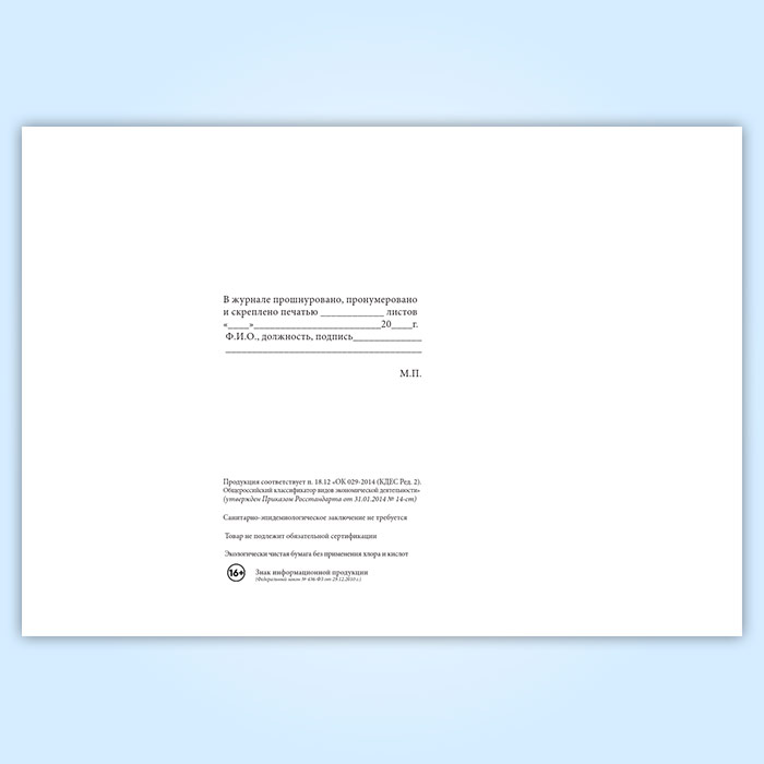 Вы получаете печатную продукцию прошнурованной и c местом для вашей печати в соответствии с действующими нормативными документами: