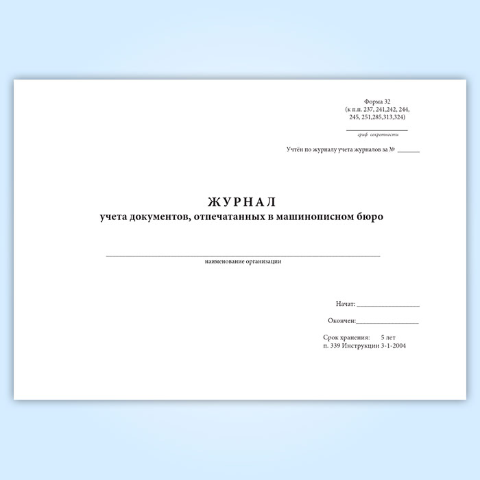 Журнал учета документов, отпечатанных в машинописном бюро (форма 32) в Хотьково купить