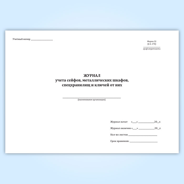 Журнал учета сейфов, металлических шкафов, спецхранилищ и ключей от них в Хотьково купить