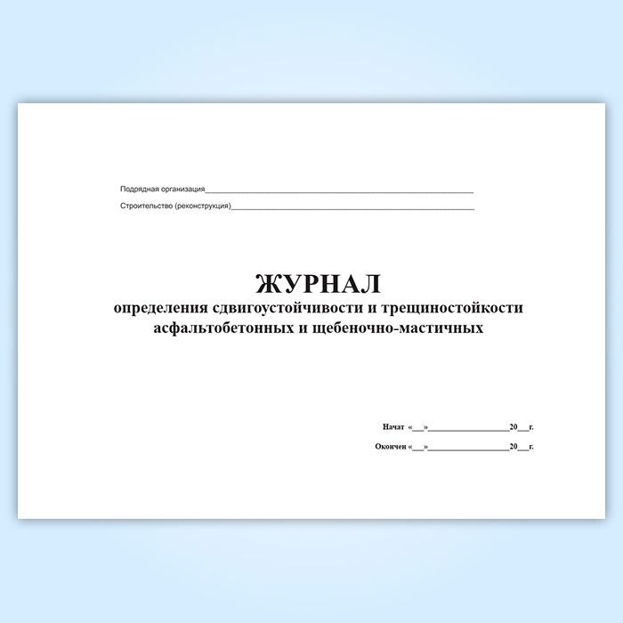 Журнал определения сдвигоустойчивости и трещиностойкости асфальтобетонных и щебеночно-мастичных покрытий в Хотьково купить