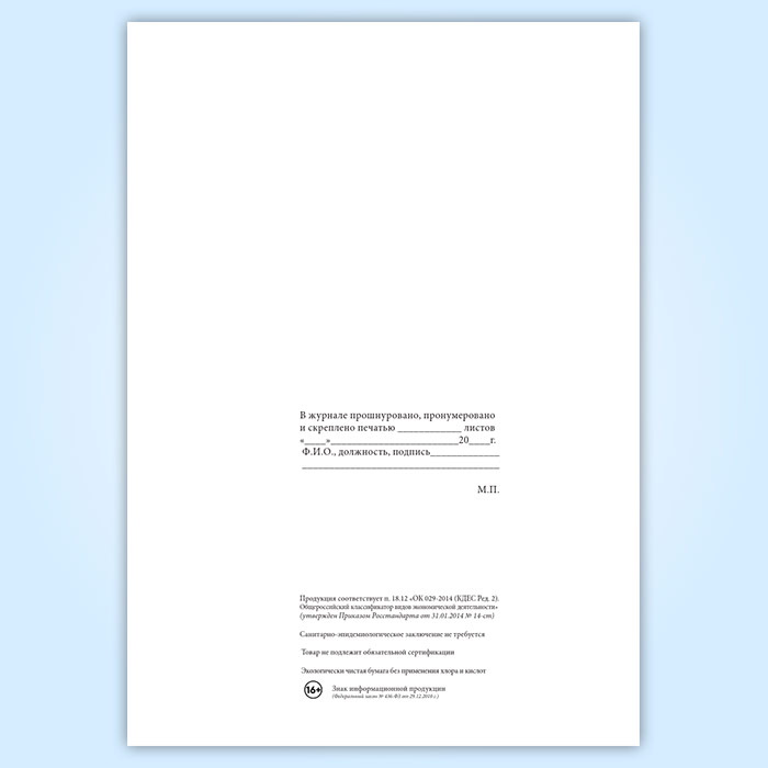 Вы получаете печатную продукцию прошнурованной и c местом для вашей печати в соответствии с действующими нормативными документами:
