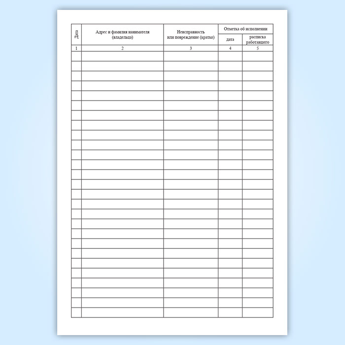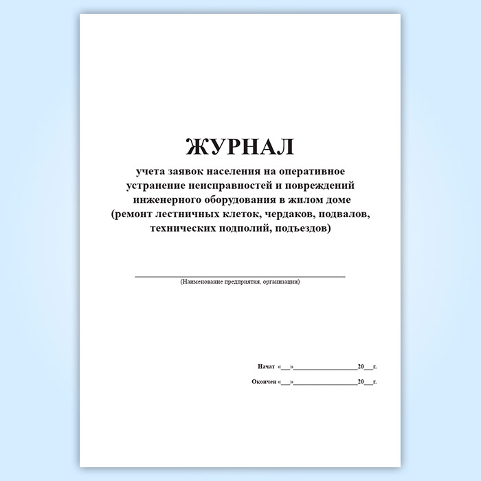 Журнал учета заявок населения на оперативное устранение неисправностей и повреждений инженерного оборудования в жилом доме ремонт лестничных клеток, чердаков, подвалов, технических подполий, подъездов в Хотьково купить