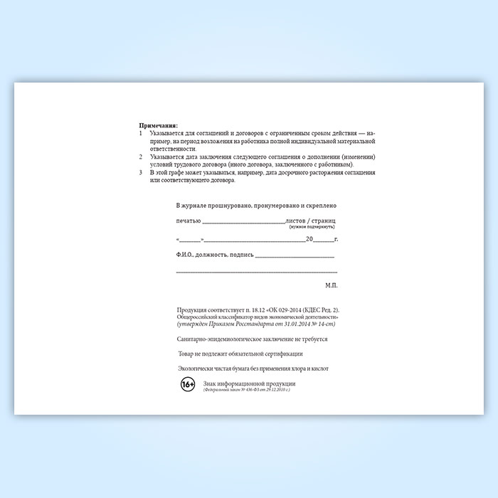 Журнал учета соглашений о дополнении (изменении) условий трудовых договоров и иных видов договоров, заключаемых с работниками предприятия в Хотьково купить
