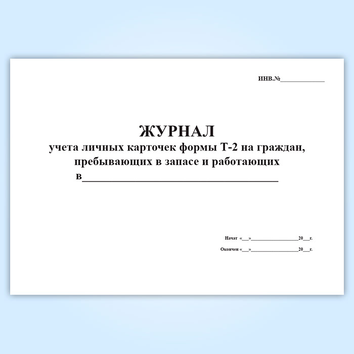 Журнал учета личных карточек формы Т-2 на граждан, пребывающих в запасе и работающих в Хотьково купить