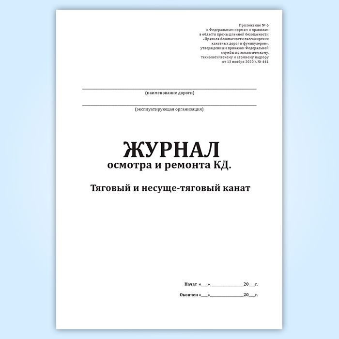 Журнал осмотра и ремонта канатной дороги. Тяговый и несуще-тяговый канат (форма № 2) в Хотьково купить