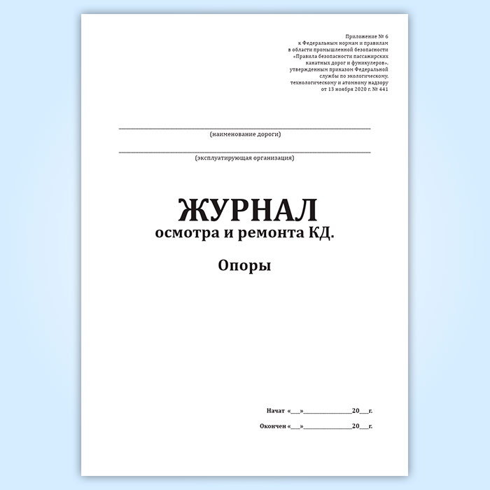 Журнал осмотра и ремонта канатной дороги. Опоры (форма № 6) в Хотьково купить