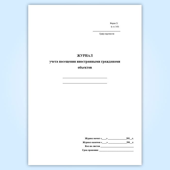 Журнал учета посещения иностранными гражданами объектов (форма 21) в Хотьково купить