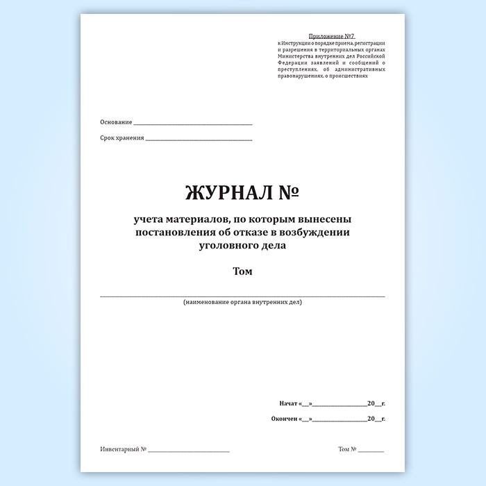 Журнал учета материалов, по которым вынесены постановления об отказе в возбуждении уголовного дела в Хотьково купить