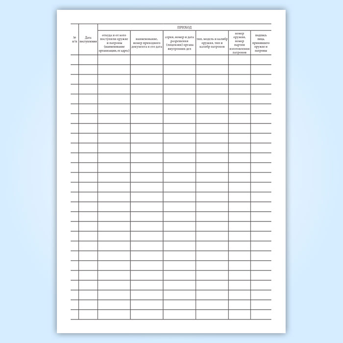 Книга учета наличия и движения поступающего, хранящегося и выдаваемого (проданного) оружия и патронов в Хотьково купить