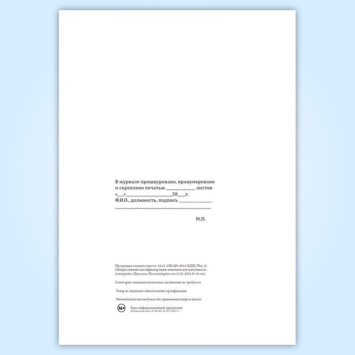 Вы получаете печатную продукцию прошнурованной и c местом для вашей печати в соответствии с действующими нормативными документами: