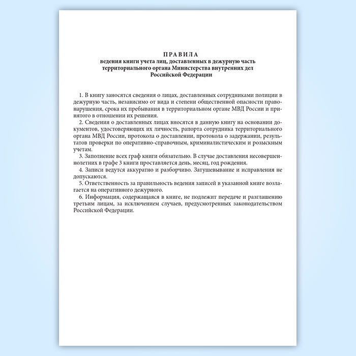 Книга учета лиц, доставленных в дежурную часть территориального органа МВД РФ в Хотьково купить
