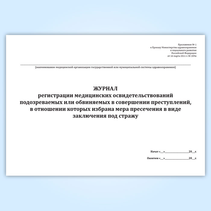 Журнал регистрации медицинских освидетельствований подозреваемых или обвиняемых в совершении преступлений, в отношении которых избрана мера пресечения в виде заключения под стражу в Хотьково купить