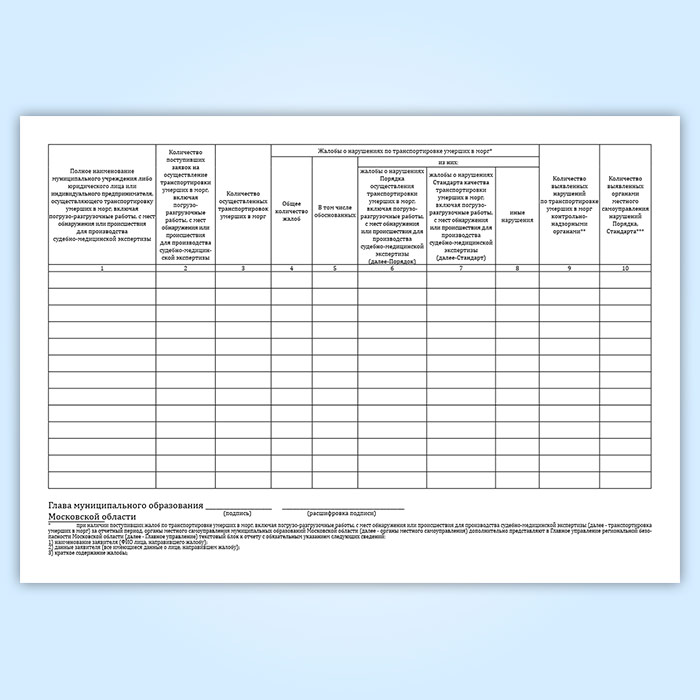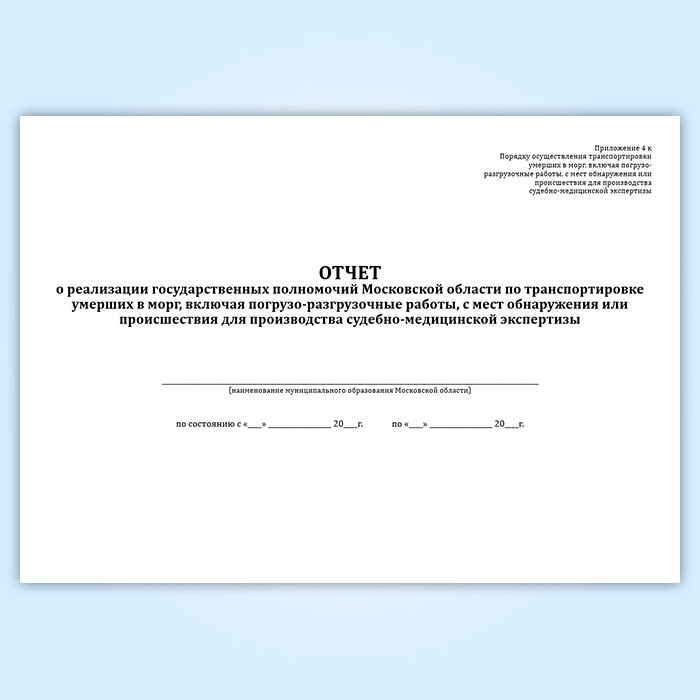 Отчет о реализации государственных полномочий Московской области по транспортировке умерших в морг, включая погрузо-разгрузочные работы, с мест обнаружения или происшествия для производства судебно-медицинской экспертизы в Хотьково купить