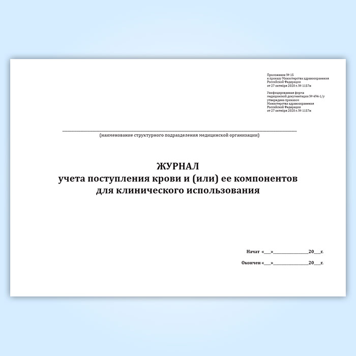 Журнал учета поступления крови и (или) ее компонентов для клинического использования (форма № 494-1/у) в Хотьково купить
