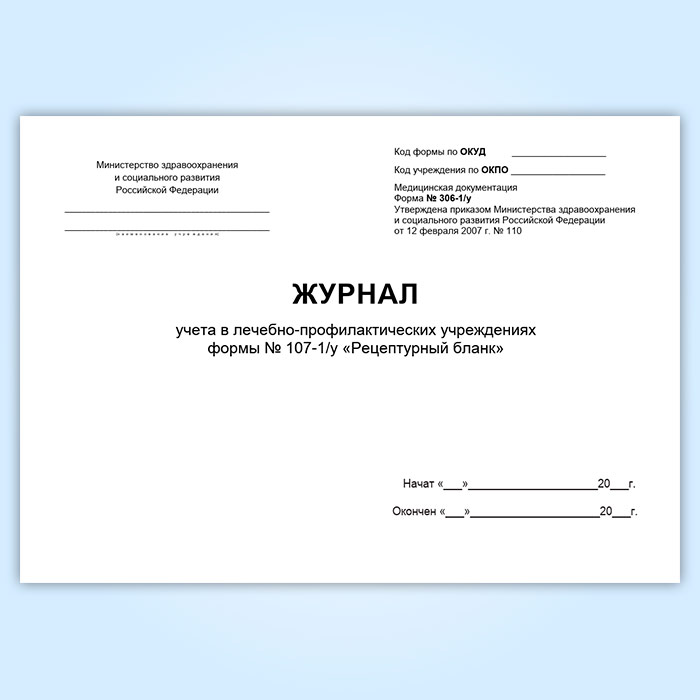 Журнал учета в лечебно-профилактических учреждениях рецептурных бланков формы № 107-1/у (форма № 306-1/у) в Хотьково купить