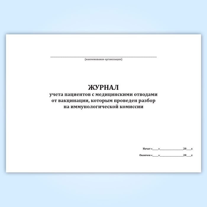 Журнал учета пациентов с медицинскими отводами от вакцинации, которым проведен разбор на иммунологической комиссии в Хотьково купить