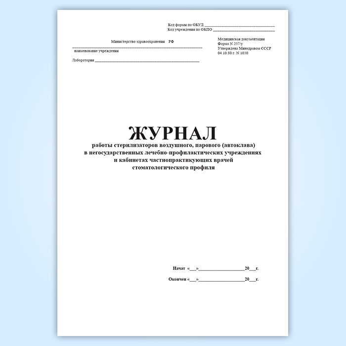 Журнал работы стерилизаторов воздушного, парового (автоклава) в негосударственных лечебно-профилактических учреждениях и кабинетах частнопрактикующих врачей стоматологического профиля (форма 257/у) в Хотьково купить
