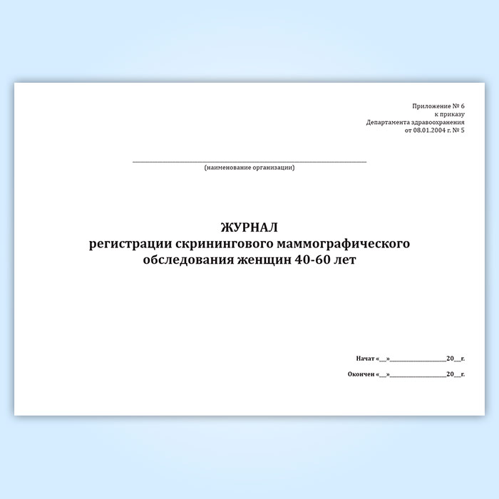 Журнал регистрации скринингового маммографического обследования женщин 40-60 лет в Хотьково купить