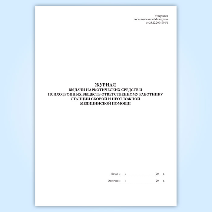 Журнал выдачи наркотических средств и психотропных веществ ответственному работнику станции скорой и неотложной медицинской помощи в Хотьково купить