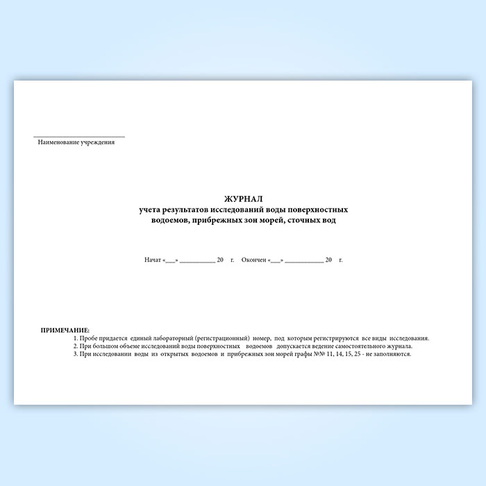 Журнал учета результатов исследований воды поверхностных водоемов, прибрежных зон морей, сточных вод (форма № 324-у) в Хотьково купить