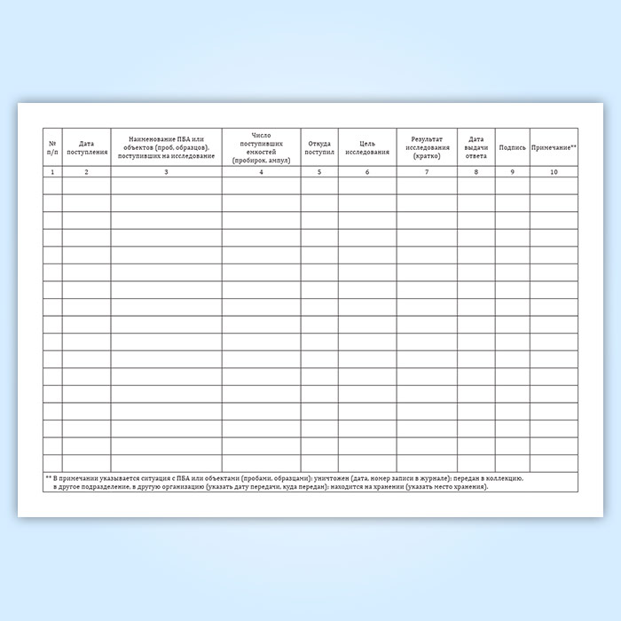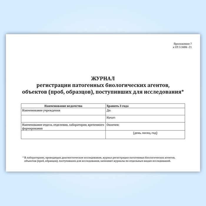 Журнал регистрации патогенных биологических агентов, объектов (проб, образцов), поступивших для исследования в Хотьково купить
