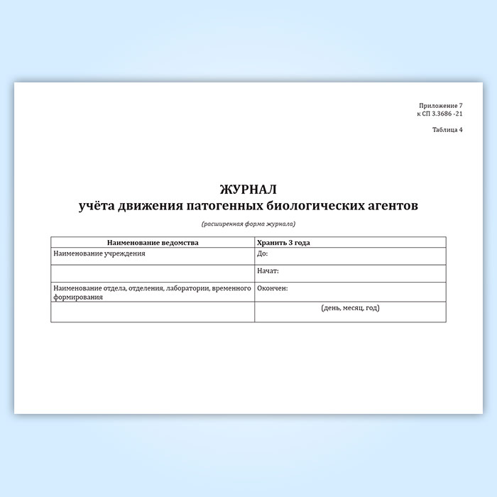 Журнал учета движения патогенных биологических агентов (СанПиН 3.3686-21, расширенная форма) в Хотьково купить