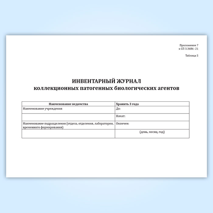Инвентарный журнал коллекционных патогенных биологических агентов (СанПиН 3.3686-21) в Хотьково купить