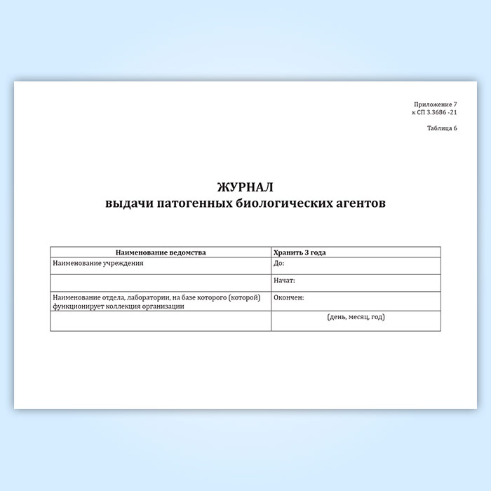 Журнал выдачи патогенных биологических агентов (СанПиН 3.3686-21) в Хотьково купить