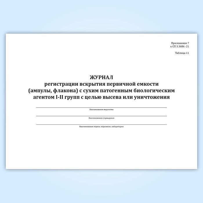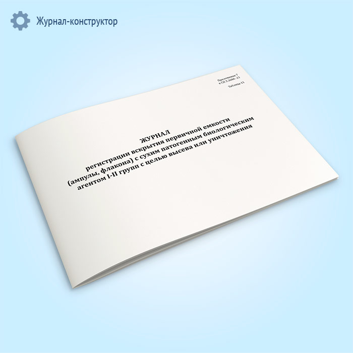 Журнал регистрации вскрытия первичной емкости (ампулы, флакона) с сухим патогенным биологическим агентов I-II групп с целью высева или уничтожения в Хотьково купить