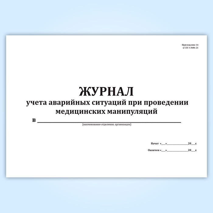 Журнал учета аварийных ситуаций при проведении медицинских манипуляций (СанПиН 3.3686-21) в Хотьково купить