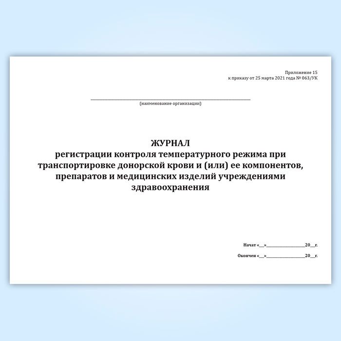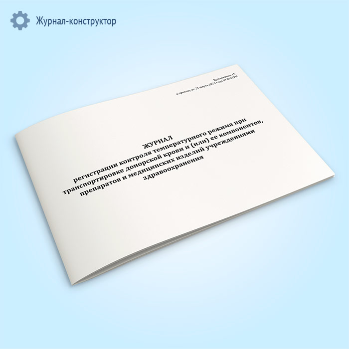 Журнал регистрации контроля температурного режима при транспортировке донорской крови и (или) ее компонентов, препаратов и медицинских изделий учреждениями здравоохранения в Хотьково купить