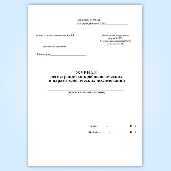 Журнал регистрации микробиологических и паразитологических исследований (форма 252/у) в Хотьково купить