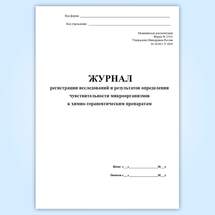 Журнал регистрации исследований и результатов определения чувствительности микроорганизмов к химио-терапевтическим препаратам (форма 254/у) в Хотьково купить