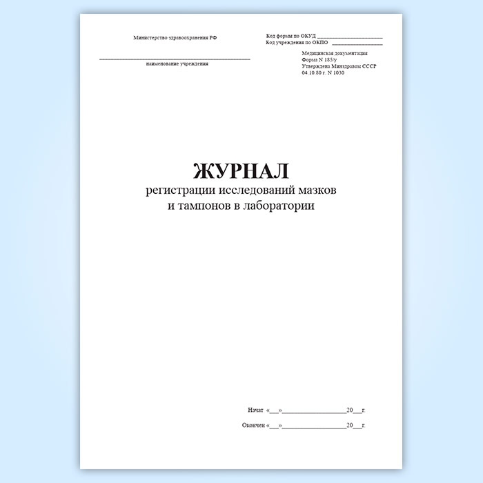 Журнал регистрации исследований мазков и тампонов в лаборатории (форма 185/у) в Хотьково купить