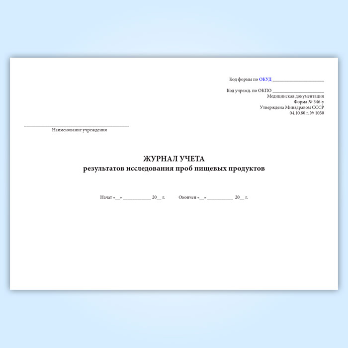 Журнал учета результатов исследования проб пищевых продуктов (форма 346/у) в Хотьково купить