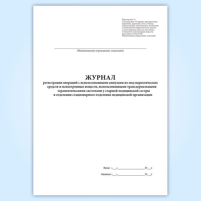 Журнал регистрации операций с использованными ампулами из-под наркотических средств и психотропных веществ, использованными трансдермальными терапевтическими системами у старшей медицинской сестры в отделении стационарного отделения медицинской организации в Хотьково купить