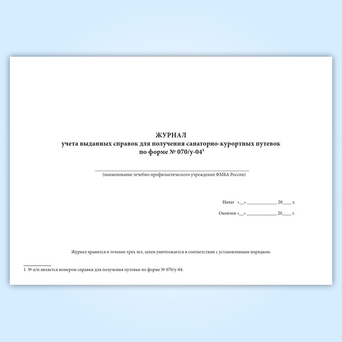Журнал учета выданных справок для получения санаторно-курортных путевок (форма № 070/у-04) в Хотьково купить