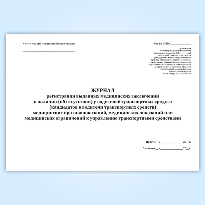 Журнал регистрации выданных медицинских заключений о наличии (об отсутствии) у водителей транспортных средств (кандидатов в водители транспортных средств) медицинских противопоказаний, медицинских показаний или медицинских ограничений к управлению транспортными средствами в Хотьково купить