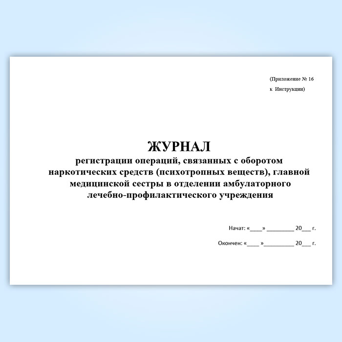 Журнал регистрации операций, связанных с оборотом наркотических средств (психотропных веществ), главной медицинской сестры в отделении амбулаторного лечебно-профилактического учреждения в Хотьково купить