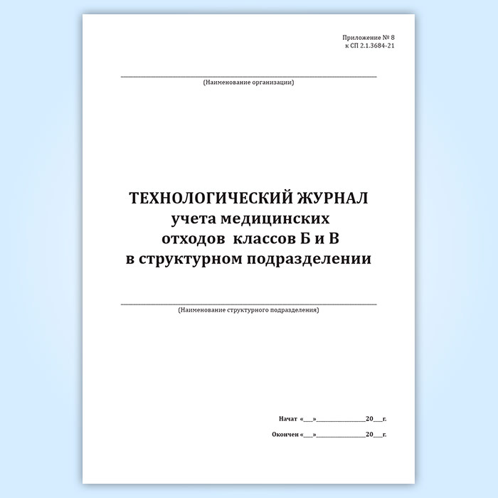 Технологический журнал учета медицинских отходов классов Б и В в структурном подразделении в Хотьково купить