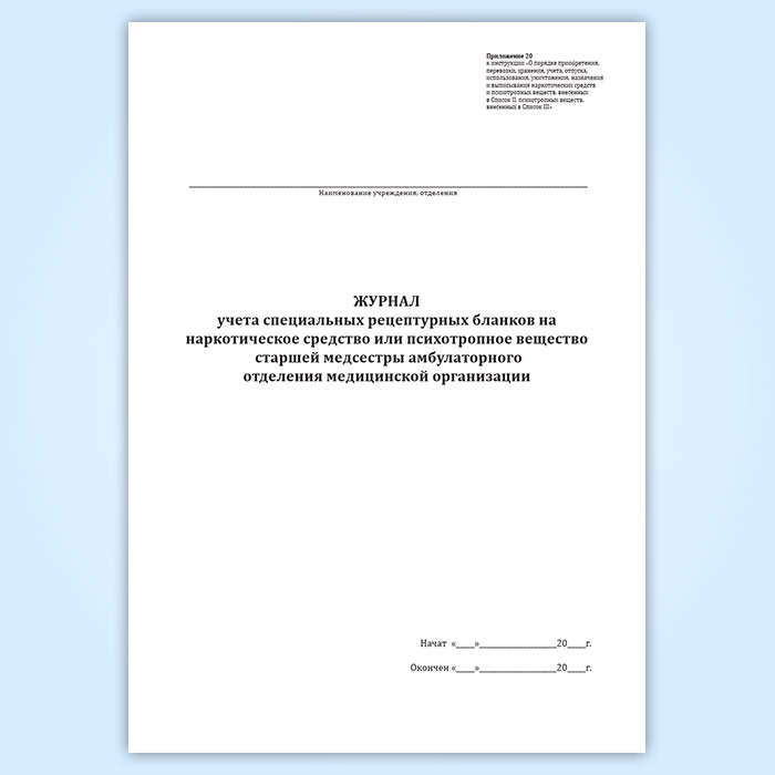 Журнал учета специальных рецептурных бланков на наркотическое средство или психотропное вещество старшей медсестры амбулаторного отделения медицинской организации в Хотьково купить