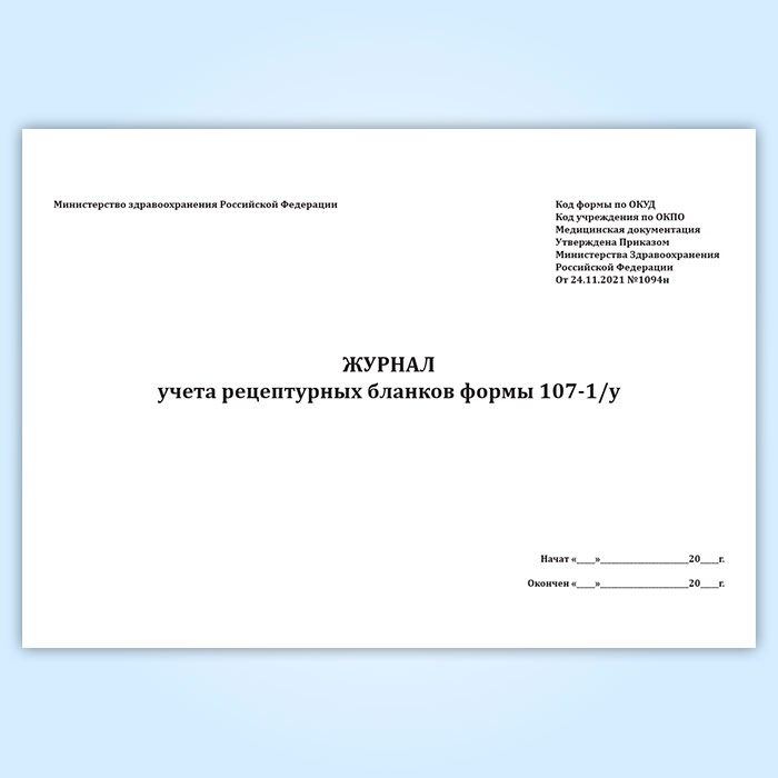 Журнал учета рецептурных бланков формы 107-1/у (новый) (Приказ Минздрава России от 24.11.2021 N 1094н) в Хотьково купить