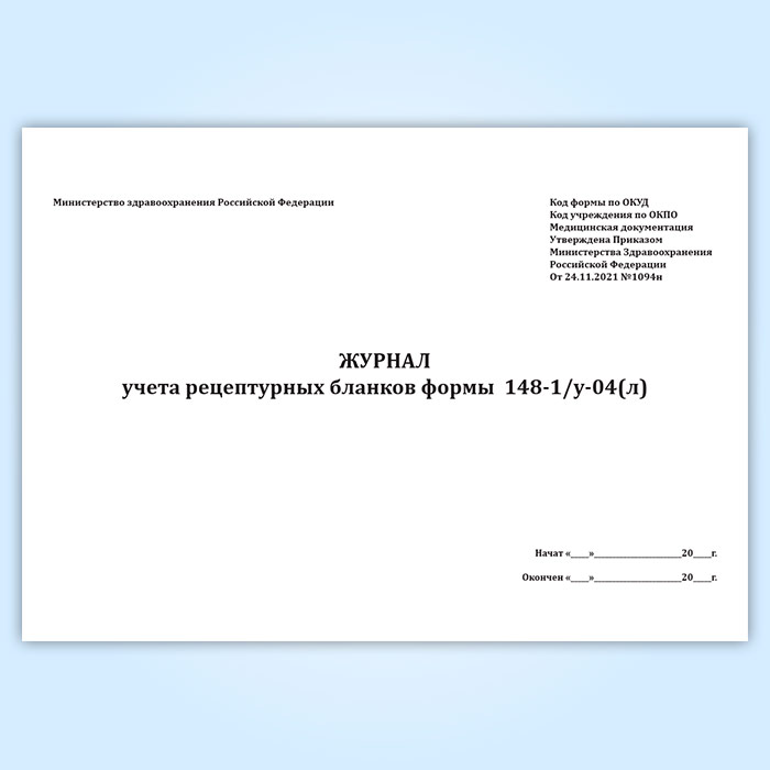 Журнал учета рецептурных бланков формы 148-1/у-04(л) (новый) (Приказ Минздрава России от 24.11.2021 N 1094н) в Хотьково купить