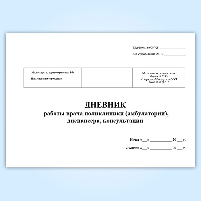 Дневник работы врача поликлиники (амбулатории), диспансера, консультации (форма 039/у) в Хотьково купить