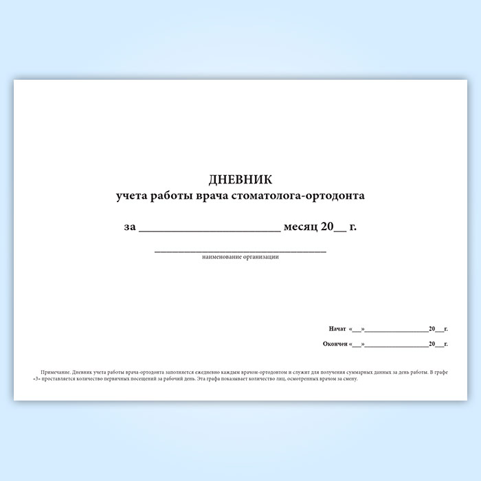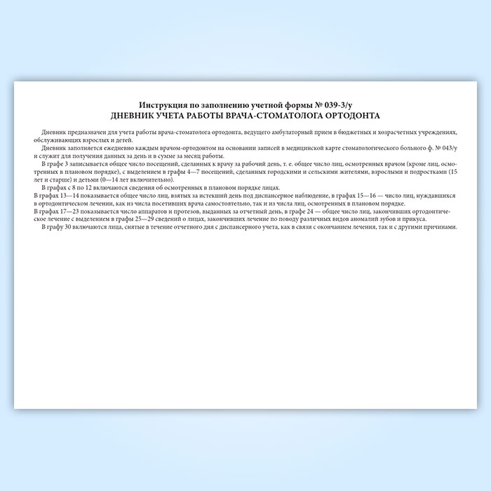 Дневник учета работы врача стоматолога-ортодонта (форма 039-3у) в Хотьково купить
