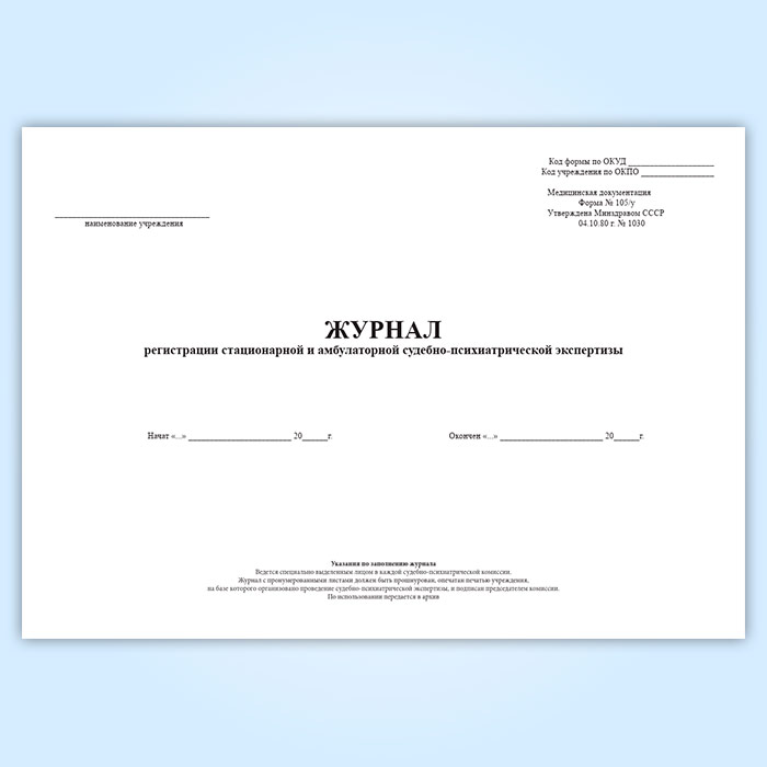 Журнал регистрации стационарной и амбулаторной судебно-психиатрической экспертизы (форма 105/у) в Хотьково купить