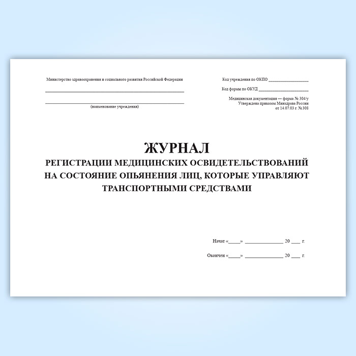 Журнал регистрации медицинских освидетельствований на состояние опьянения лиц, которые управляют транспортными средствами (форма 304/у) в Хотьково купить