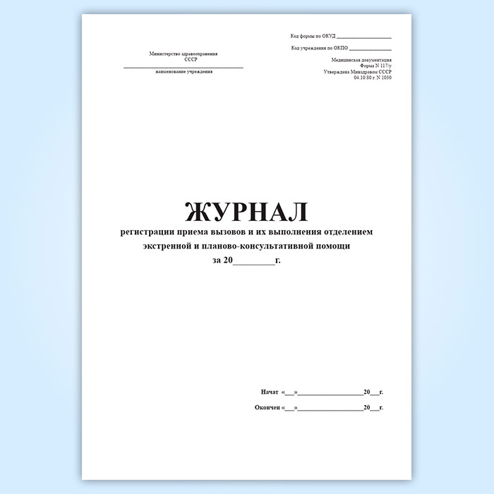 Журнал регистрации приема вызовов и их выполнения отделением экстренной и планово-консультативной помощи (форма 117/у) в Хотьково купить
