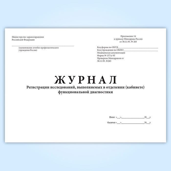 Журнал регистрации исследований, выполняемых в отделении (кабинете) функциональной диагностики (форма 157/у-93) в Хотьково купить