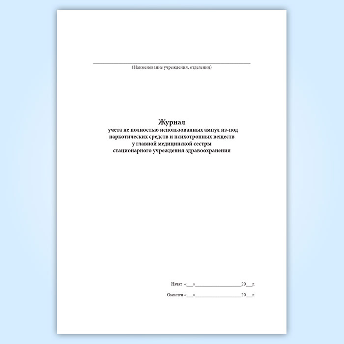 Журнал учета не полностью использованных ампул из-под наркотических средств и психотропных веществ у главной медицинской сестры стационарного учреждения здравоохранения в Хотьково купить